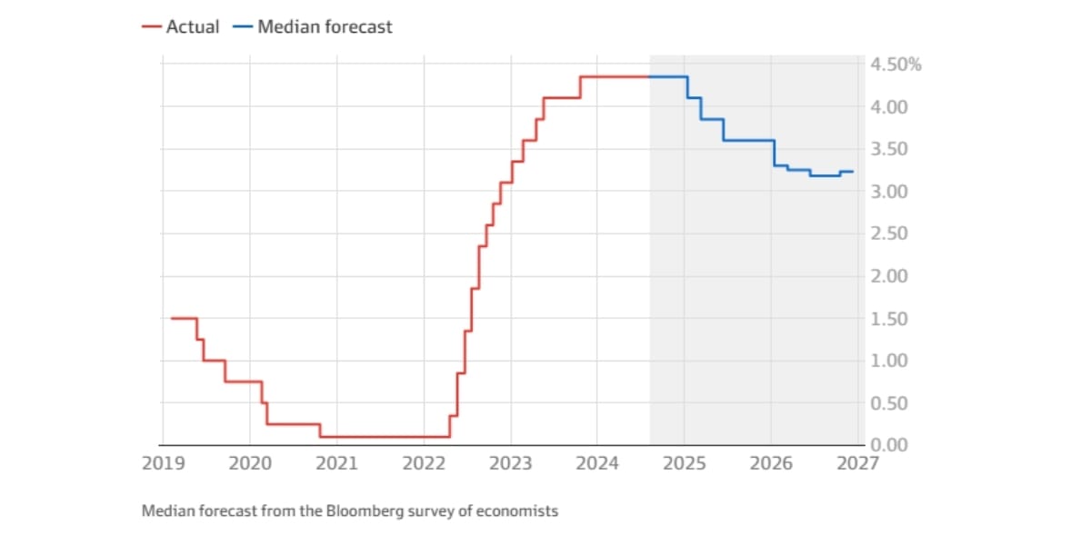 Median Forecast Interest Rates from Bloomberg Survey of Economists, Aug 2024